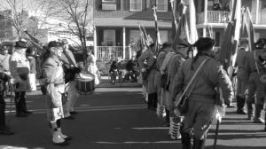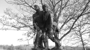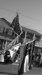 Each year on the Saturday closest to Nov 19, Gettysburg has Remembrance Day (Lincoln gave the Gettysburg Address on Nov 19). It is a chance to remember the battle, the war, and the cost of freedom. Norwich University hosts a short (2-3 mile) walking battlefield tour ending at the National Cemetery where we place flags on graves.The interior section of the cemetery is where they buried many of the Federal troops killed during the Battle of Gettysburg 149 (!) years ago. As time has passed they’ve found that some of those buried were probably Confederate troops so you’ll occasionally come across something like this where you have a USA & a CSA flag side by side.I’ve gone several years on these tours with Norwich & every time I am struck by the fencing as we walk the park, esp near the “high water mark.”Honestly, aren’t these angles fun? On a more serious note, it is easy to see why people would get caught at the fences when trying to advance across the fields.After the tour we go to the main street for the Remembrance Day Parade. Hundreds of re-enactors participate each year, their last hurrah for the season.Not all of the costumed march. Others stand on the sidelines & cheer. This juxtaposition made me smile – the woman in her period clothes holding a McDonald’s bag. Most come in Civil War era clothing but we did see a Teddy Roosevelt, a couple of dough boys, & several WWII airborne infantry.I didn’t get a picture of him but you always have a Lincoln & a General Lee. Both sides are represented during the day’s festivities although I failed to get pictures of the Federal troops as I was warming up indoors when they went by, although I could see them through windows.The re-enactors get to pick their own rank so you get a disproportionate number of high ranking officers to enlisted. 🙂 Many of the re-enactors are young…Very young!Most of the younger re-enactors are pipests,or they’re drummer boys.Black & white photography just felt right for the time period they are portrayingBut this bag pipest’s costume needed to be seen in color. The traditional kilt, flashers, scarf, & tam paired with his gray coat.A few of the southern flags seen throughout the parade.I love this statue! It always reminds me of the stories I’ve read, or been told, of how you keep fighting even though you’re exhausted because you don’t want to let the “brother” fighting beside you down.For the last few years at the end of the day I’ve been able to help set up & light the lumanaries in the cemetery. Pictures don’t do it justice but it is a very powerful, moving sight.This year I was assigned to work on one of the three “unknown” sections. There are hundreds of unknowns buried here as they didn’t have dog tags. The assumption was because you served with men you grew up with they’d be able to identifiy you, but that was often not the case.To give you some idea of the number of soldiers buried here just from the Battle of Gettysburg, this is maybe 1/3 of the lumarnies.Keep in mind that this is just a small percentage of those killed during the battle as most of the dead were shipped home. It is always a forceful reminder that freedom isn’t free.