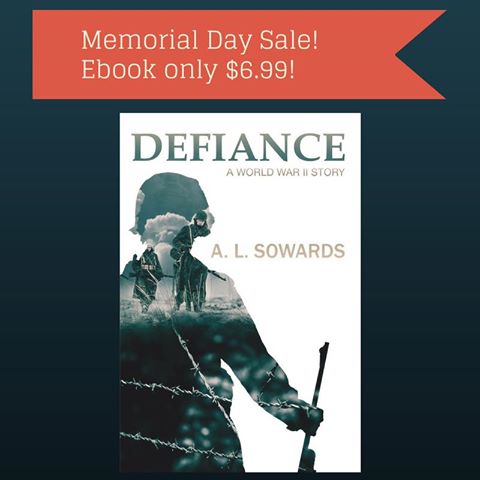 Defiance WEBIt’s not always easy to fully express my gratitude in a blog post, but it’s something I try to show in my novels. So when someone from my publisher emailed me on Friday about a special sale for Memorial Day, I loved the idea. My new novel, Defiance, will be $6.99 today in honor of Memorial Day. (That’s a $10 price drop.) This price is good for the ebook on Amazon. If you prefer a format other than kindle, it’s also available in paperback, audio cd, and ebook for Nook or DB Bookshelf.