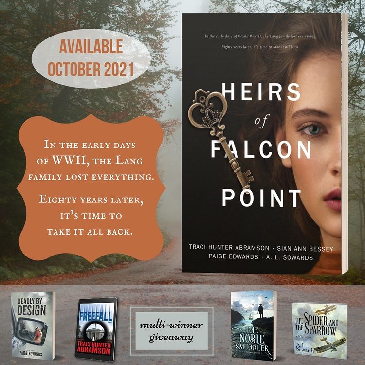 Last week we had the cover reveal for my October 2021 release, Heirs of Falcon Point, a multi-generational novel of suspense that I wrote with Sian Ann Bessey, Traci Hunter Abramson, and Paige Edwards. (More about the book here.)
